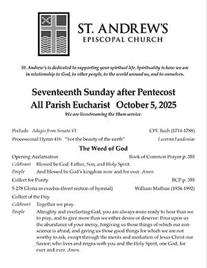 - Sunday, October 5, 2025 Seventeenth Sunday after Pentecost, All Parish Eucharist